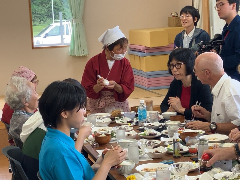 かまいしDMCとの意見交換会終了後に、地域の「食の匠」の皆さんが調理した釜石市の郷土料理が振る舞われました。郷土料理と言っても特別なものではなく、地元産の食材を使った地域で昔から食べられてきた料理であり、食の匠の皆さんから「釜石ならではの料理」の説明を受けながら昼食を楽しみました。