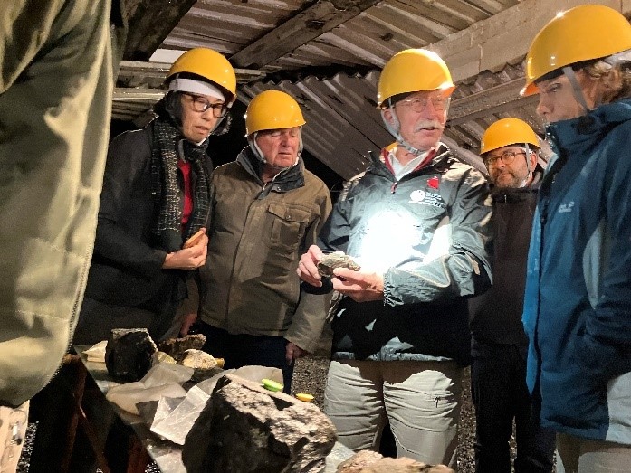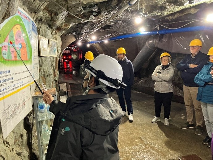 三陸ジオパークのジオサイトの一つである「釜石鉱山」を訪問し、坑道内の当時の採掘場所や地下音響実験室「グラニット・ホール」、旧鉱山事務所等の視察を行いました。