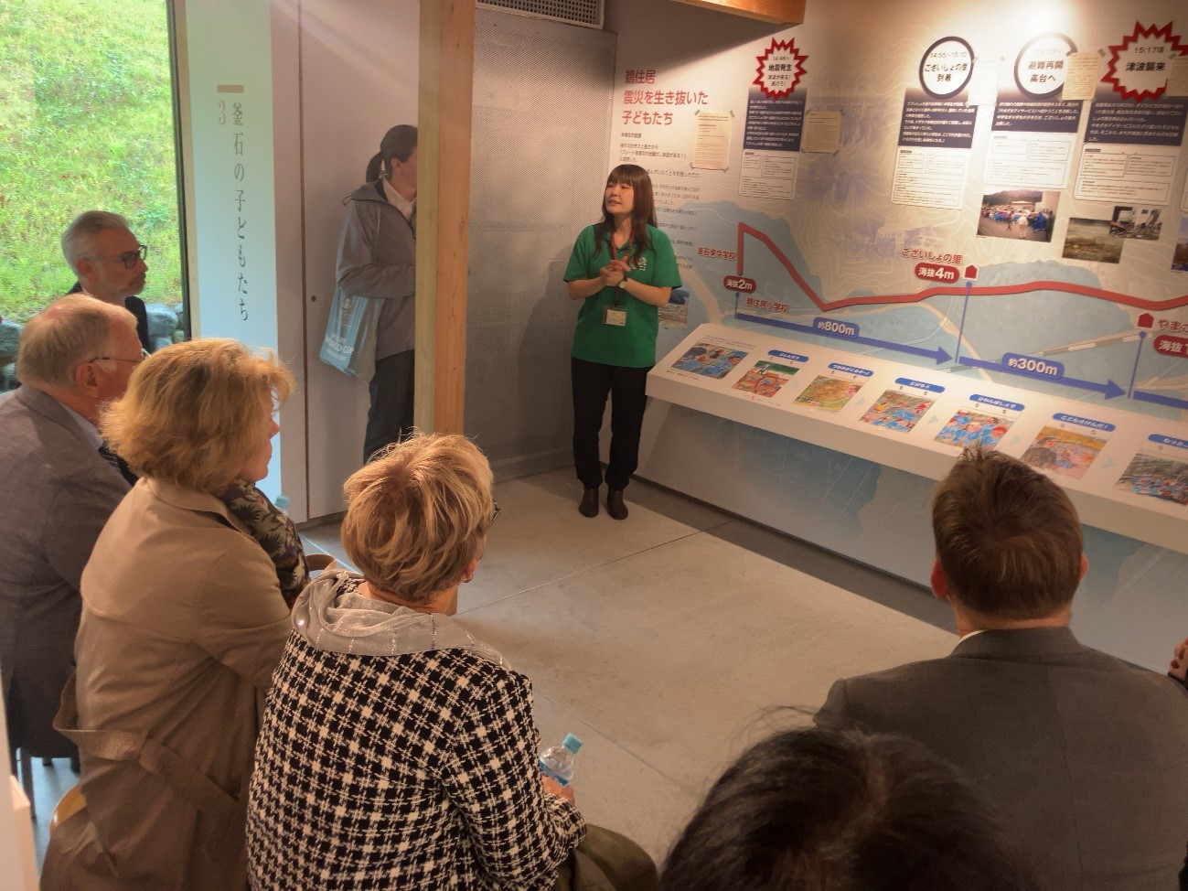 いのちをつなぐ未来館を訪問し、同館職員の説明のもと東日本大震災での出来事やそこから得られた教訓等について学びました。その後に、釜石祈りのパークにて、東日本大震災で犠牲となられた方へ哀悼の意を表するとともに献花を行いました。