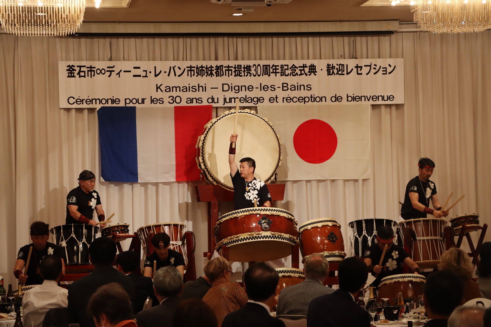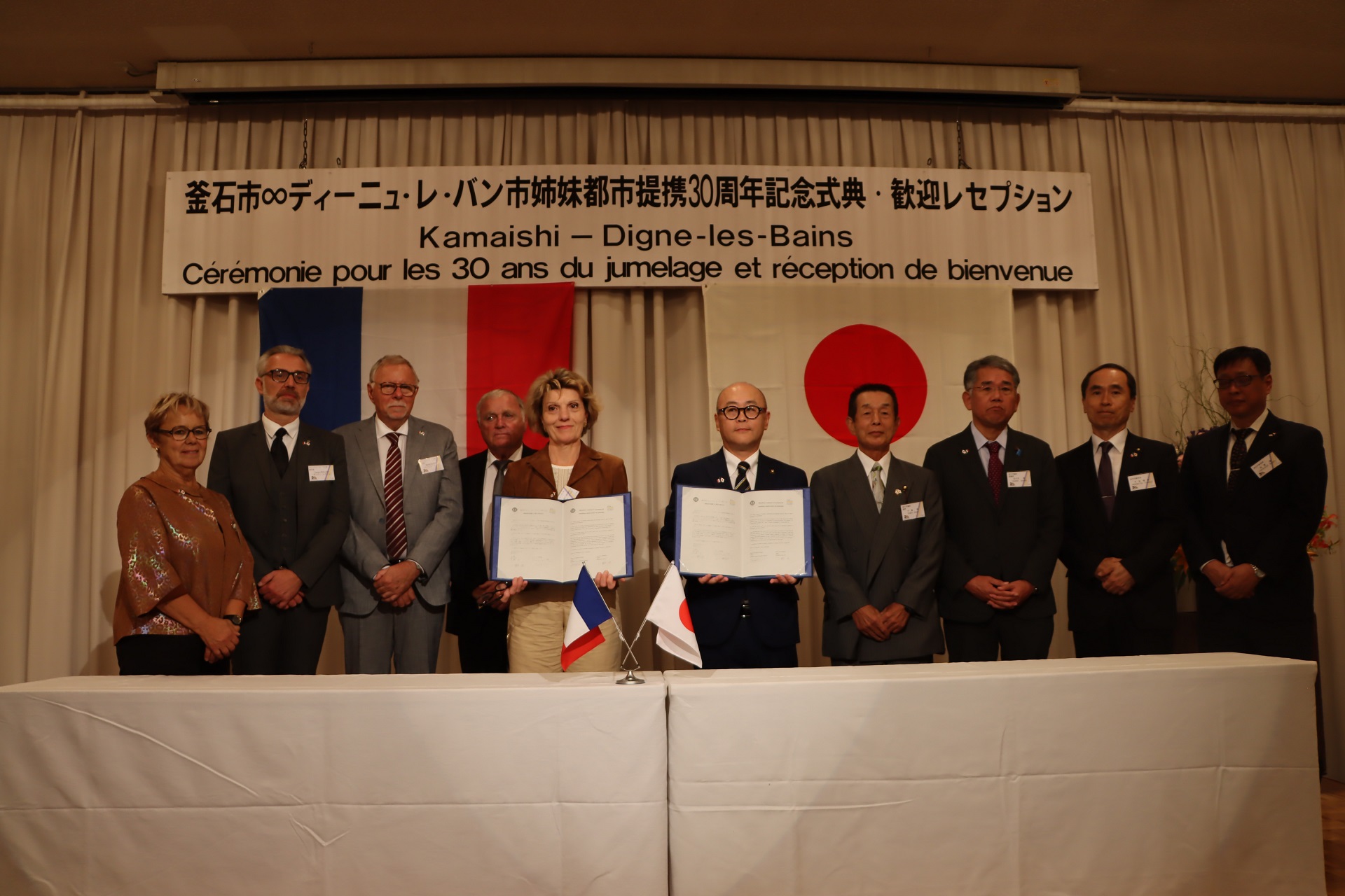 外務省や在日フランス大使館、岩手県、ロクシタンジャポン株式会社等の関係者を招き、姉妹都市提携30周年記念式典及び歓迎レセプションが開催されました。記念式典では、両市長による挨拶や関係者による祝辞の後、今後の両市のさらなる交流を約束した共同宣言が行われました。