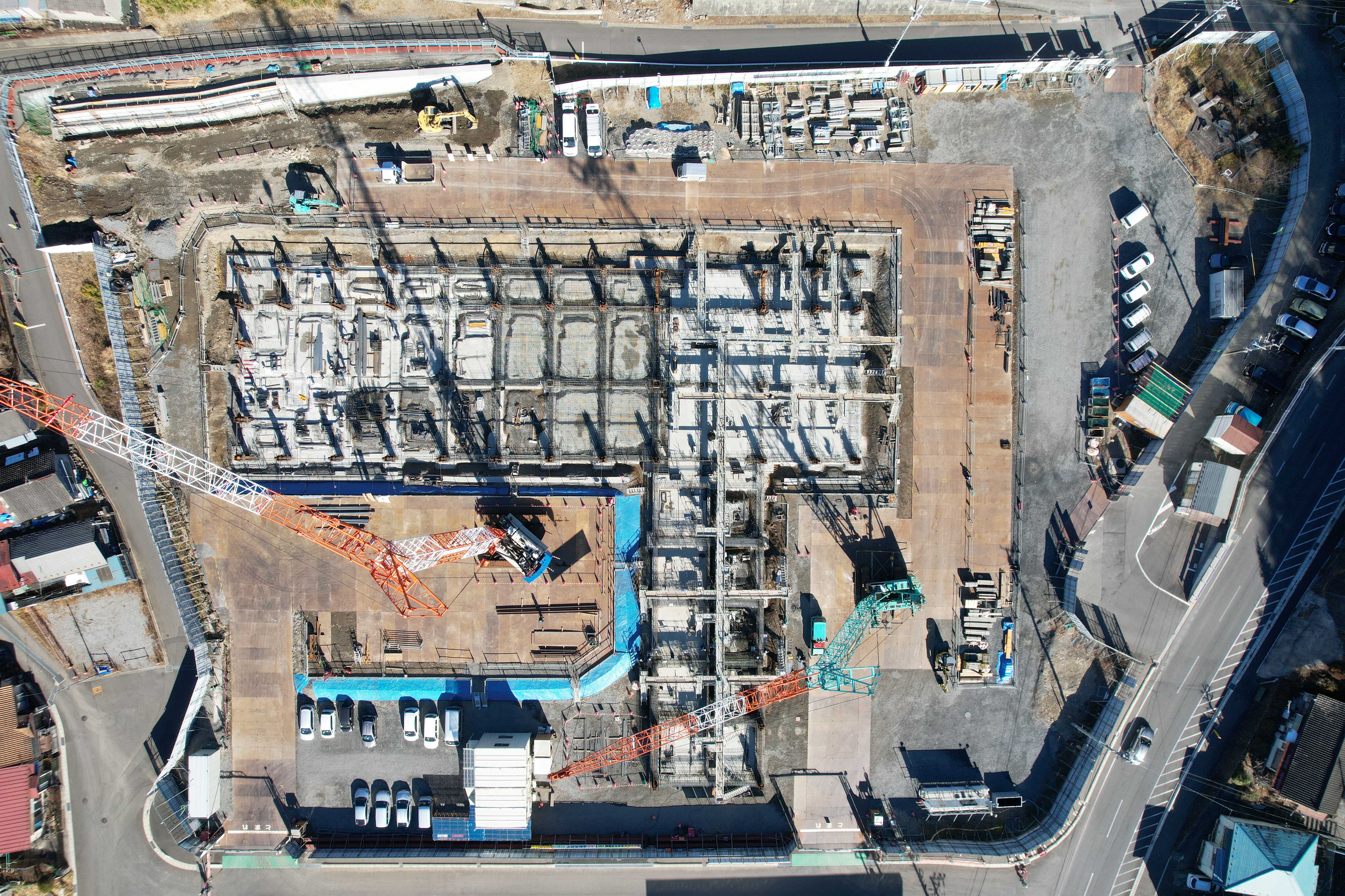 公開日 2025年01月16日 更新日 2025年02月19日 ← 先月の建設状況 (令和7年1月) 翌月の建設状況 → ※広報かまいし令和7年1月1日号に新市庁舎建設工事の記事が掲載されています。詳しくはこちらから。 令和7年1月 年が明けまして令和7年は1月6日(月)から現場が動いております。 航空写真では基礎部分の全体像がはっきりと見えてまいりました。 今年も安全第一で工事を進めてまいります。 ※令和7年1月10日撮影 定点撮影(仙寿院さま高台から撮影) ※令和7年1月15日撮影 ※建設状況一覧はこちらから この記事に関するお問い合わせ 総務企画部 新市庁舎建設推進室住所:〒026-8686 岩手県釜石市只越町3丁目9番13号TEL:0193-27-8429FAX:0193-22-2686お知らせ:問い合わせメールはこちら