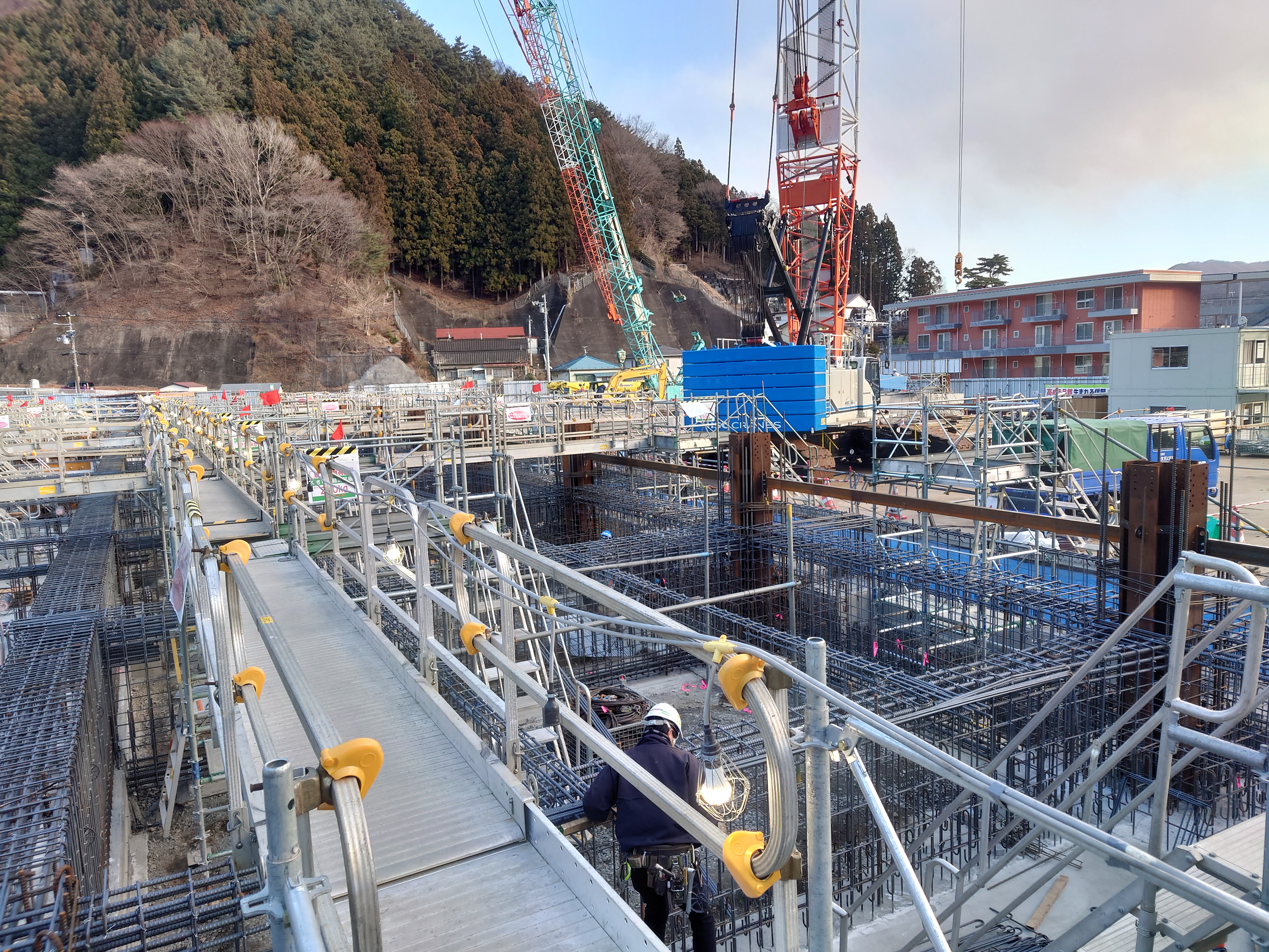 公開日 2025年02月19日 更新日 2025年03月03日 ← 先月の建設状況 (令和7年2月) 翌月の建設状況 → 令和7年2月 現場では、地下ピットから1階部分の工事が行われております。 顔認証システム:現場への工事関係者の出入りを確認・監視しています。 はみ出し防止センサー:クレーン等の重機が仮囲いからはみ出しそうなときに警報音が鳴り、事故を未然に防ぎます。 ※令和7年2月14日撮影 定点撮影(仙寿院さま高台から撮影) ※令和7年2月12日撮影 ※建設状況一覧はこちらから この記事に関するお問い合わせ 総務企画部 新市庁舎建設推進室住所:〒026-8686 岩手県釜石市只越町3丁目9番13号TEL:0193-27-8429FAX:0193-22-2686お知らせ:問い合わせメールはこちら