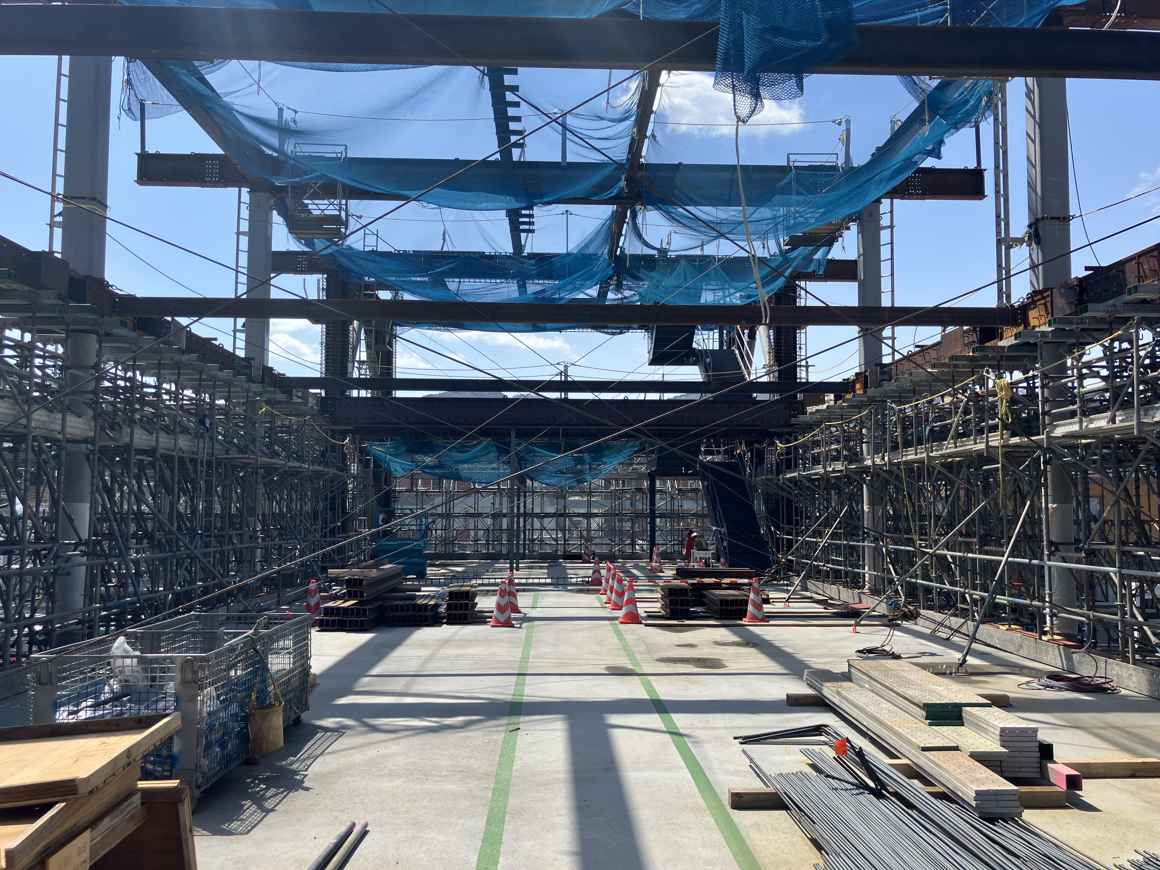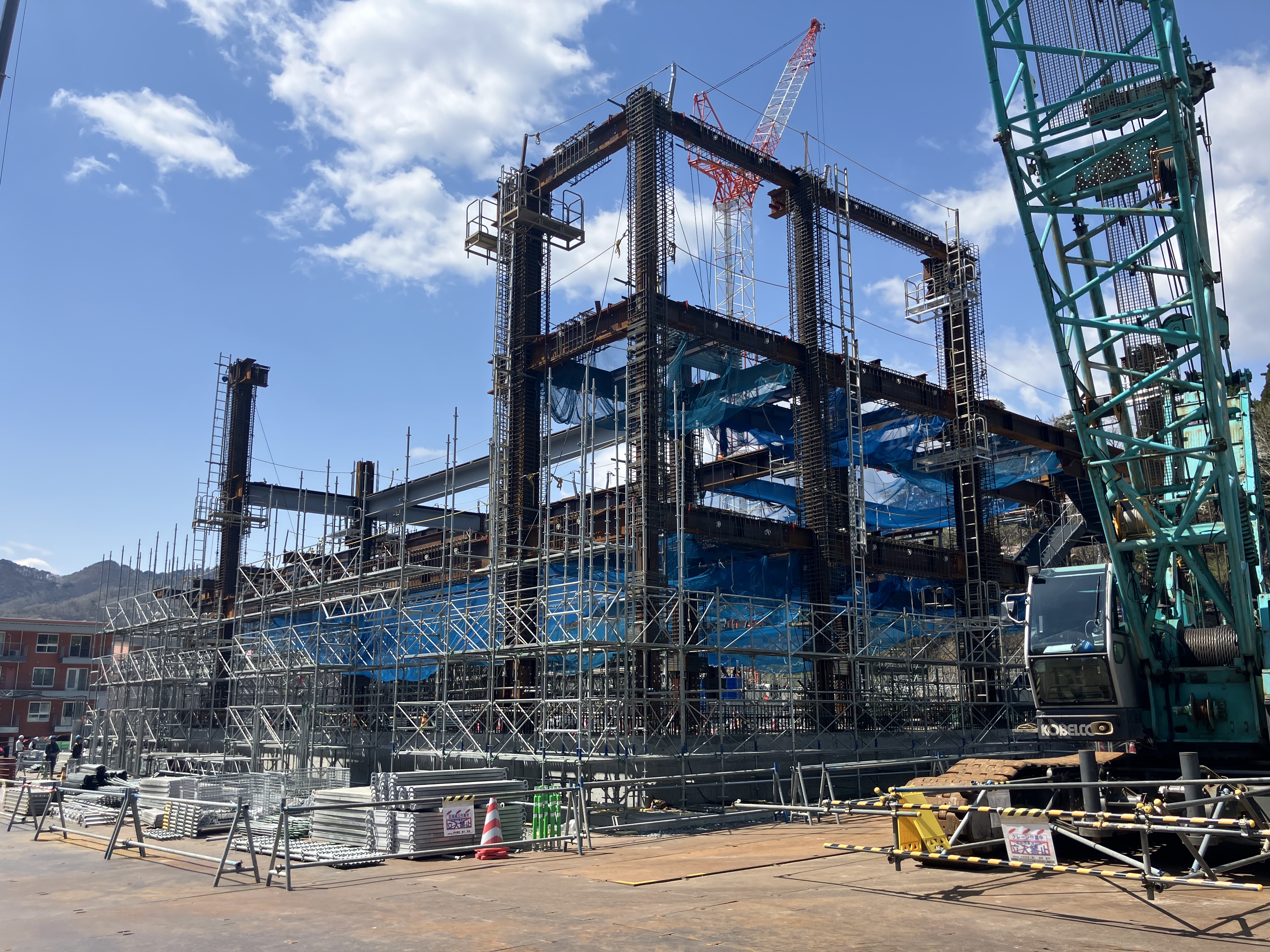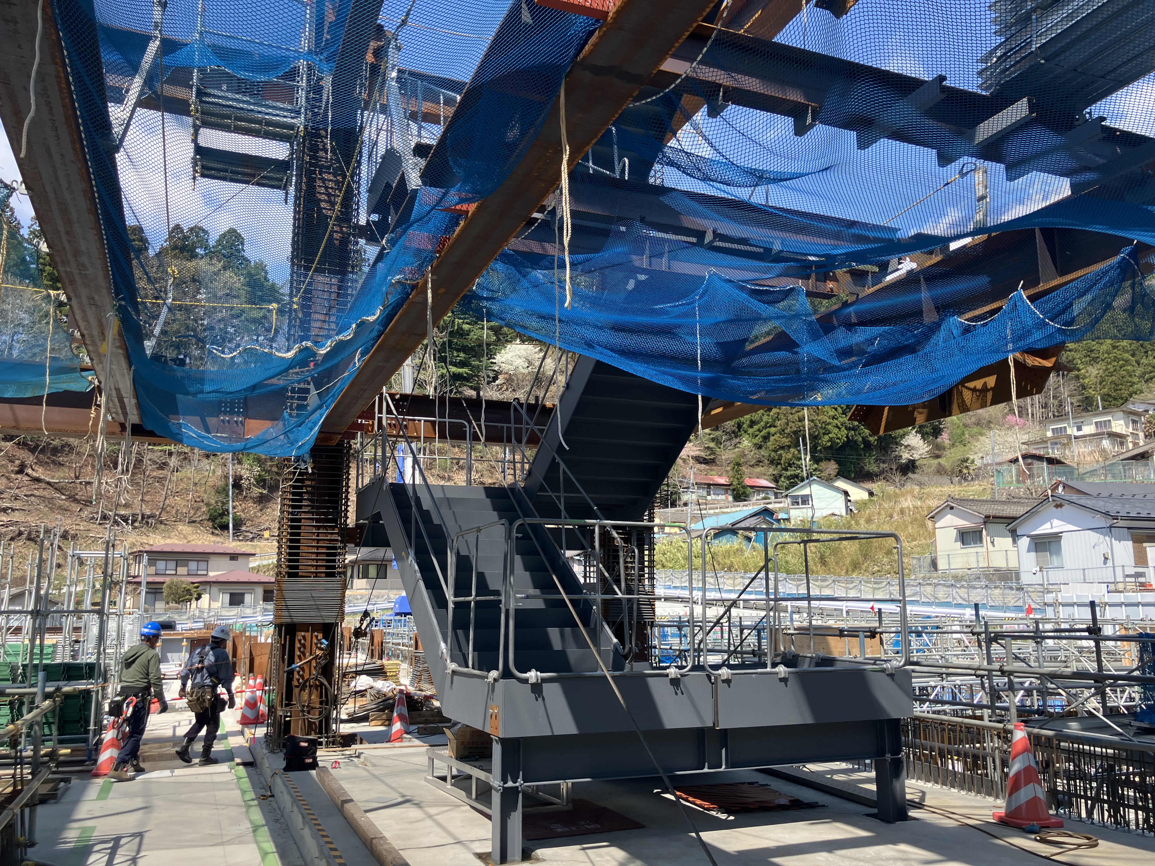 公開日 2025年04月22日 ← 先月の建設状況 (令和7年4月) 翌月の建設状況 → 令和7年4月 庁舎棟の鉄骨工事が始まりました。北東部から(写真左)、南東部から(写真右) 正面玄関から南側(写真左)、庁舎棟北側階段部(写真右) 庁舎棟西側には今後組み立て予定の鉄骨が準備されています。 車庫棟(現場北側)の基礎工事も進んでいます。 撮影日:令和7年4月21日 定点撮影(仙寿院さま高台から) 撮影日:令和7年4月21日 ※建設状況一覧はこちらから この記事に関するお問い合わせ 総務企画部 新市庁舎建設推進室住所:〒026-8686 岩手県釜石市只越町3丁目9番13号TEL:0193-27-8429FAX:0193-22-2686お知らせ:問い合わせメールはこちら