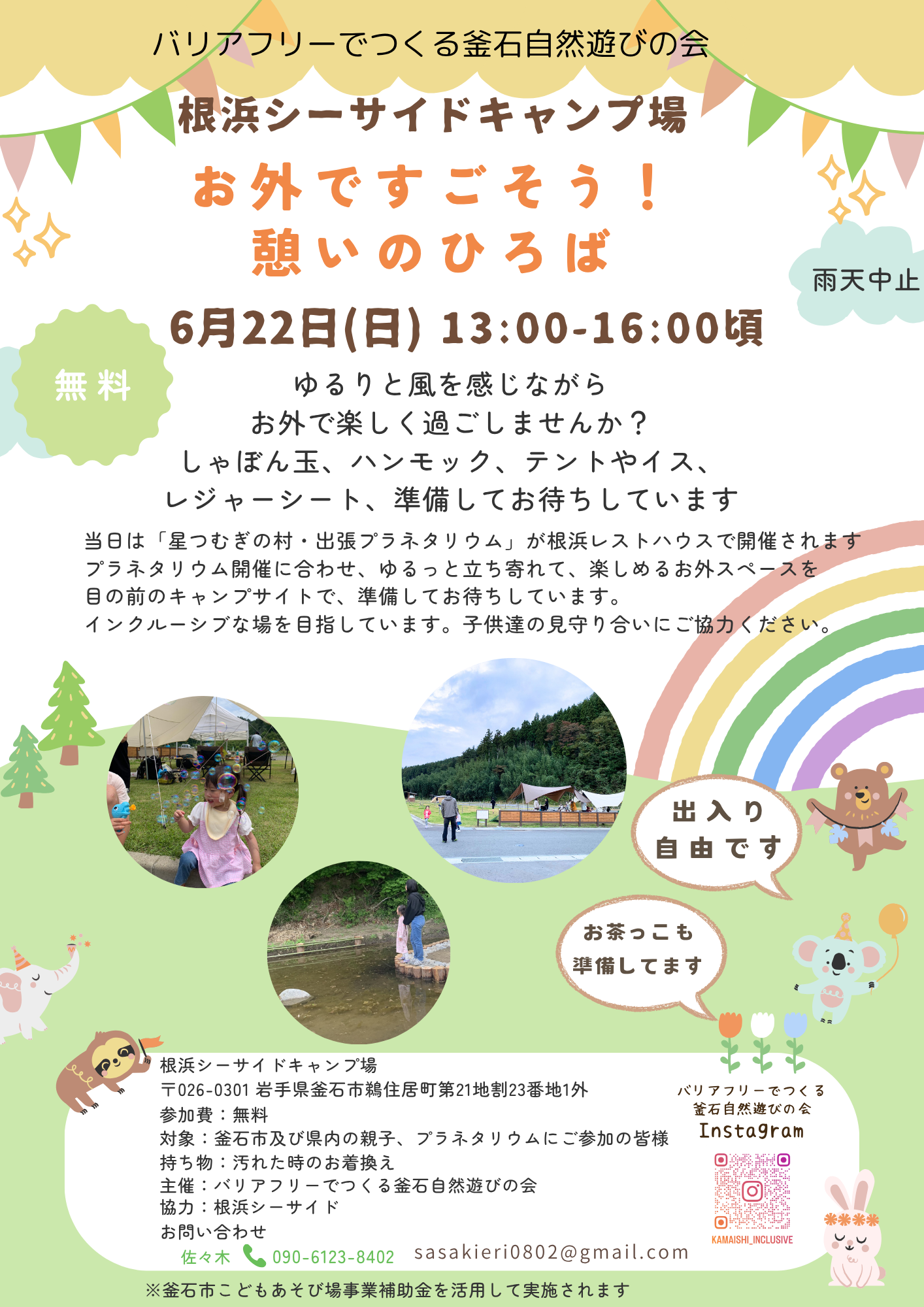 会場:ココイロいわて(旧こすもす公園)、根浜シーサイドキャンプ場