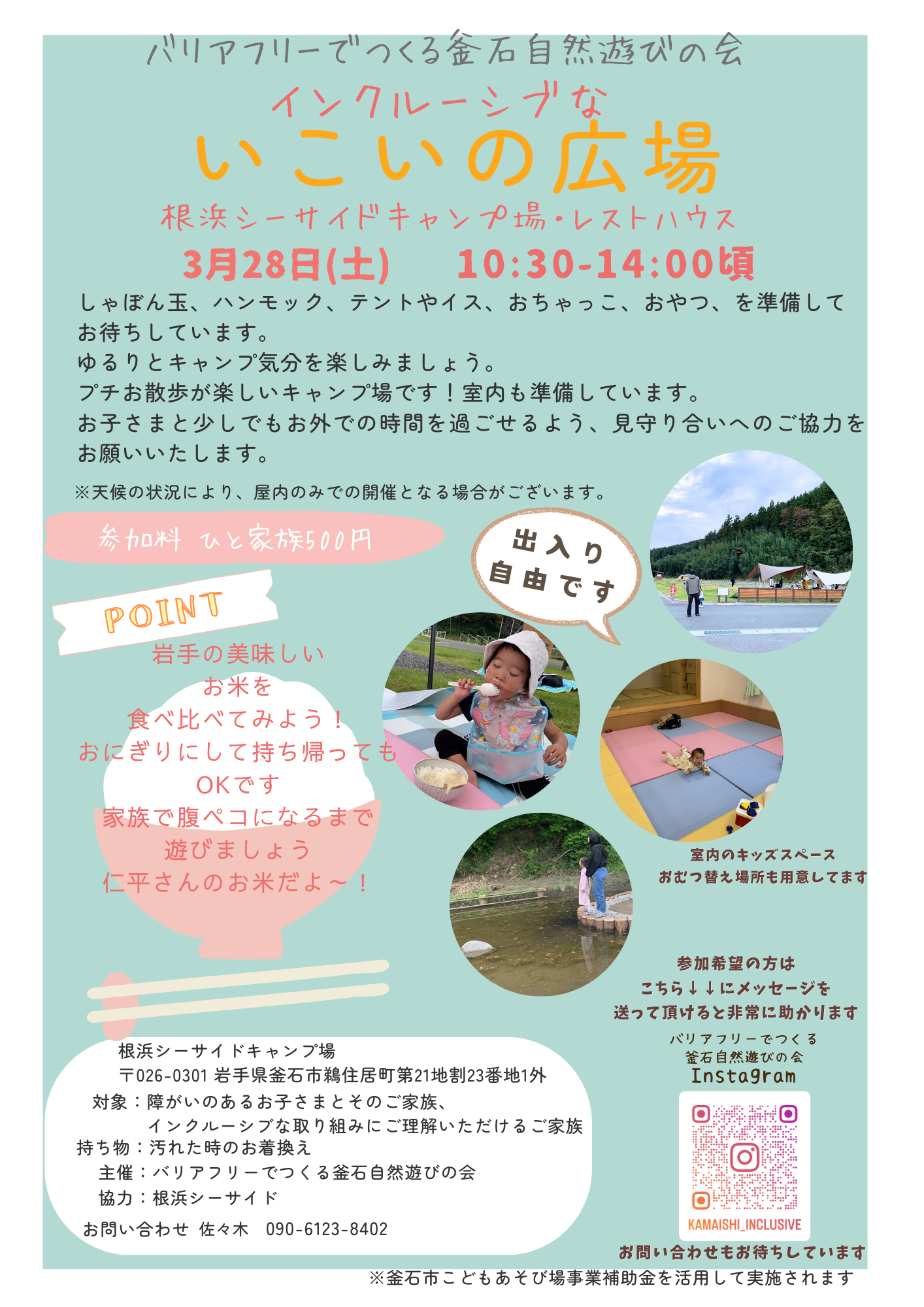 このページのイベントは、皆様からいただいた寄付金(すこやか子育て基金寄付金)を活用し、市が各団体に「釜石市自然遊び場事業補助金」を助成し実施されているものです。