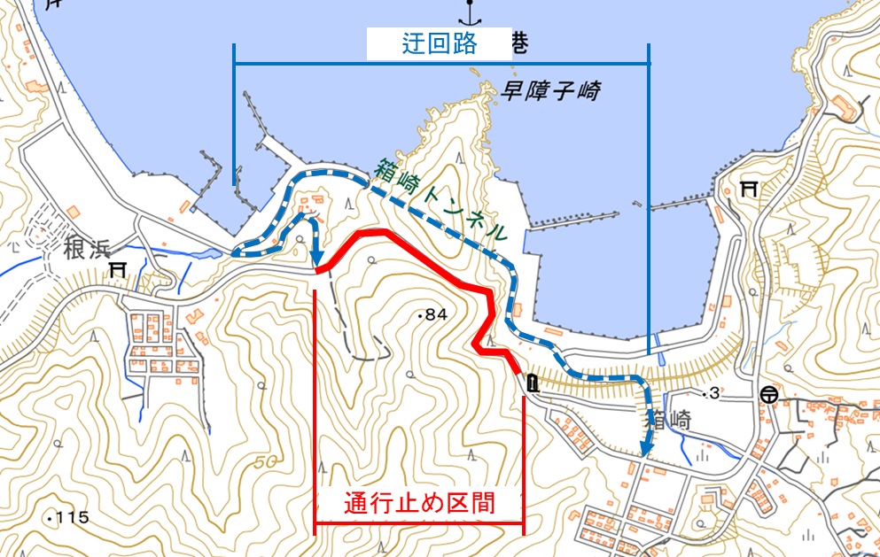 現場付近を通行の際は臨港道路へ迂回をお願いします。