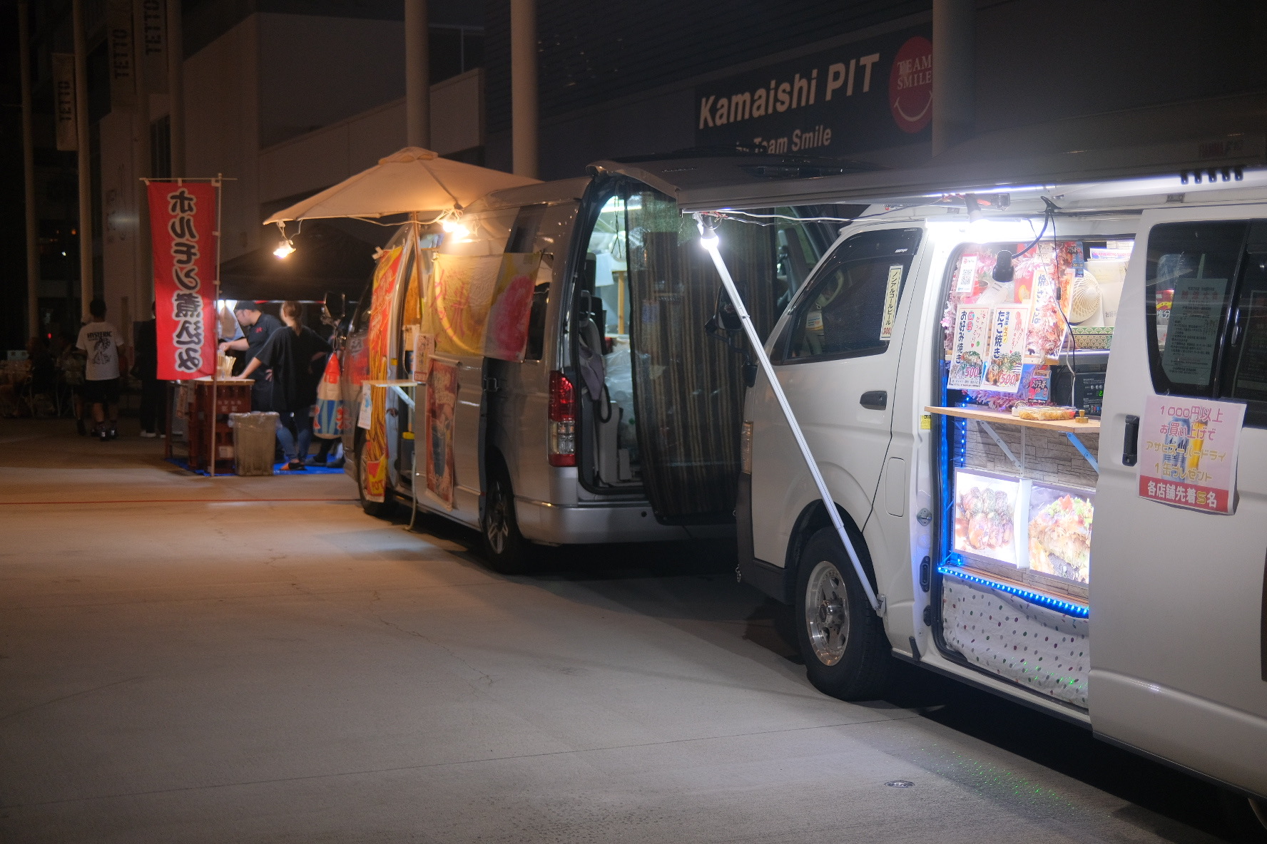 ・たこ焼き、お好み焼き、フライドポテト、ホルモン、ビール、ソフトドリンク等