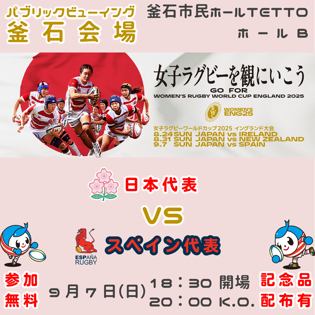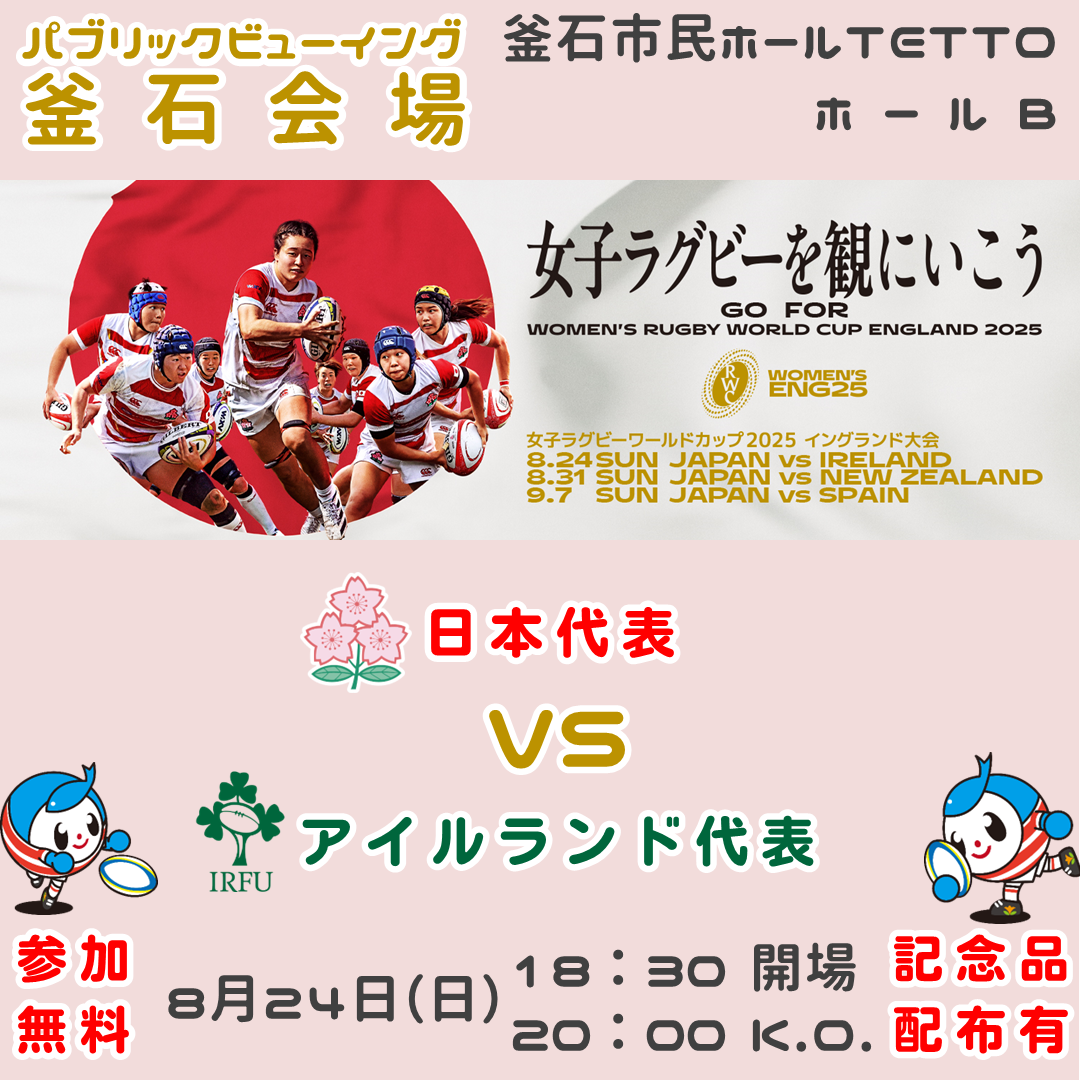 女子ラグビーワールドカップ2025イングランド大会、女子日本代表のパブリックビューイングが釜石市民ホールTETTOで開催されます。