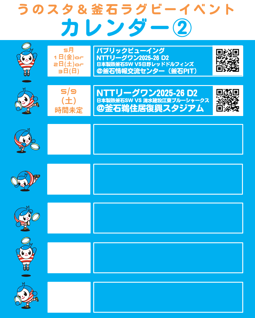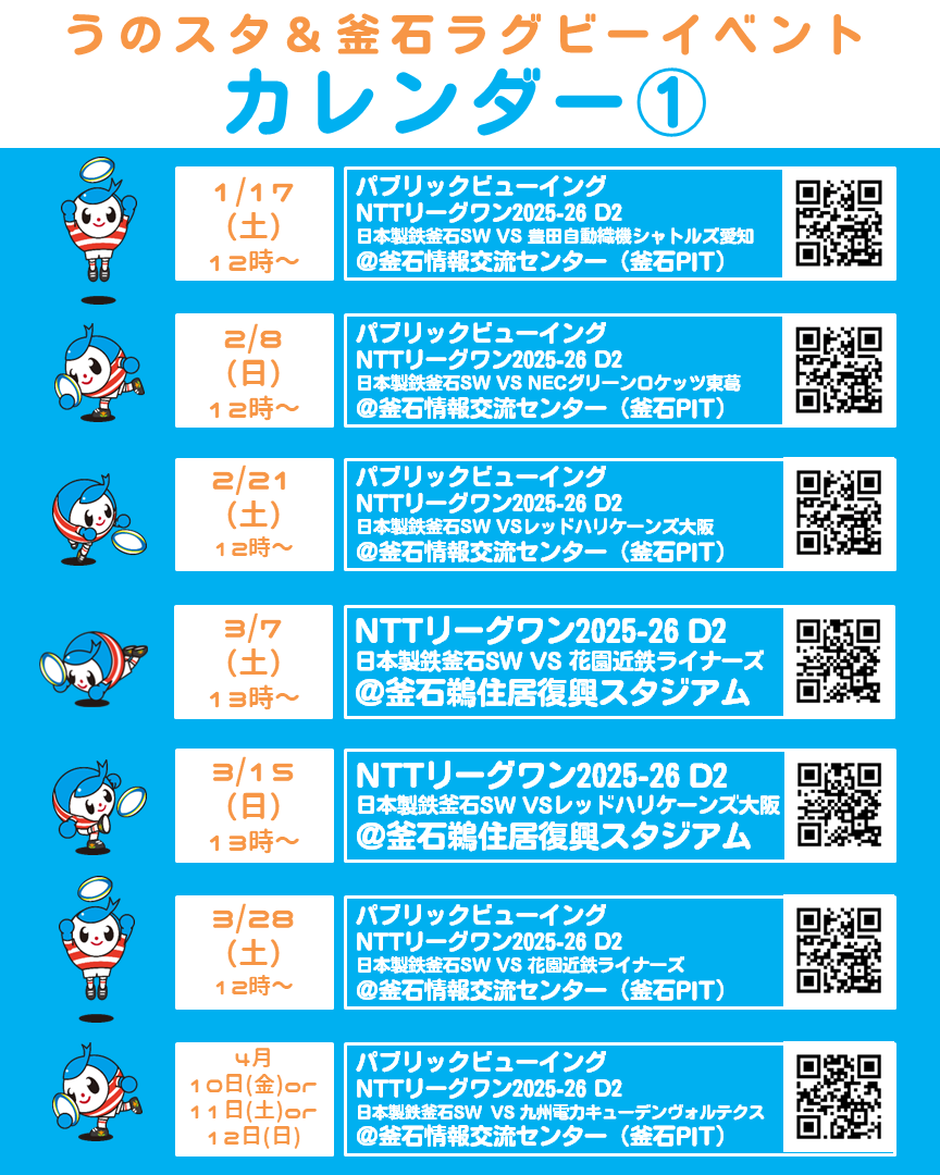 パブリックビューイング NTTリーグワン2025-26 D2 日本製鉄釜石SW VS 日野レッドドルフィンズ |