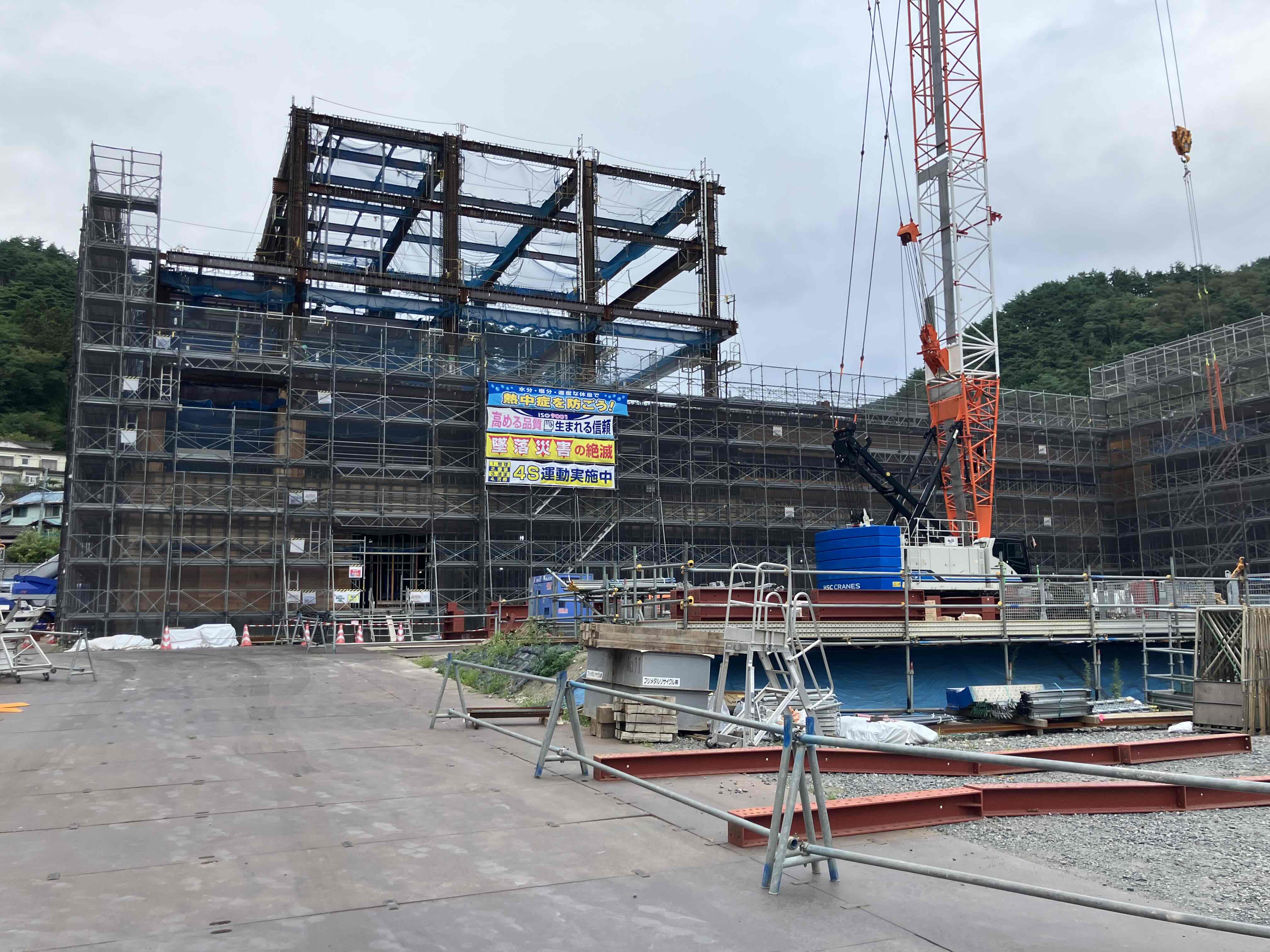 庁舎棟では第2節(3階から4階)の鉄骨組み立て工事が始まりました。写真の場所は議場となる部分になります。