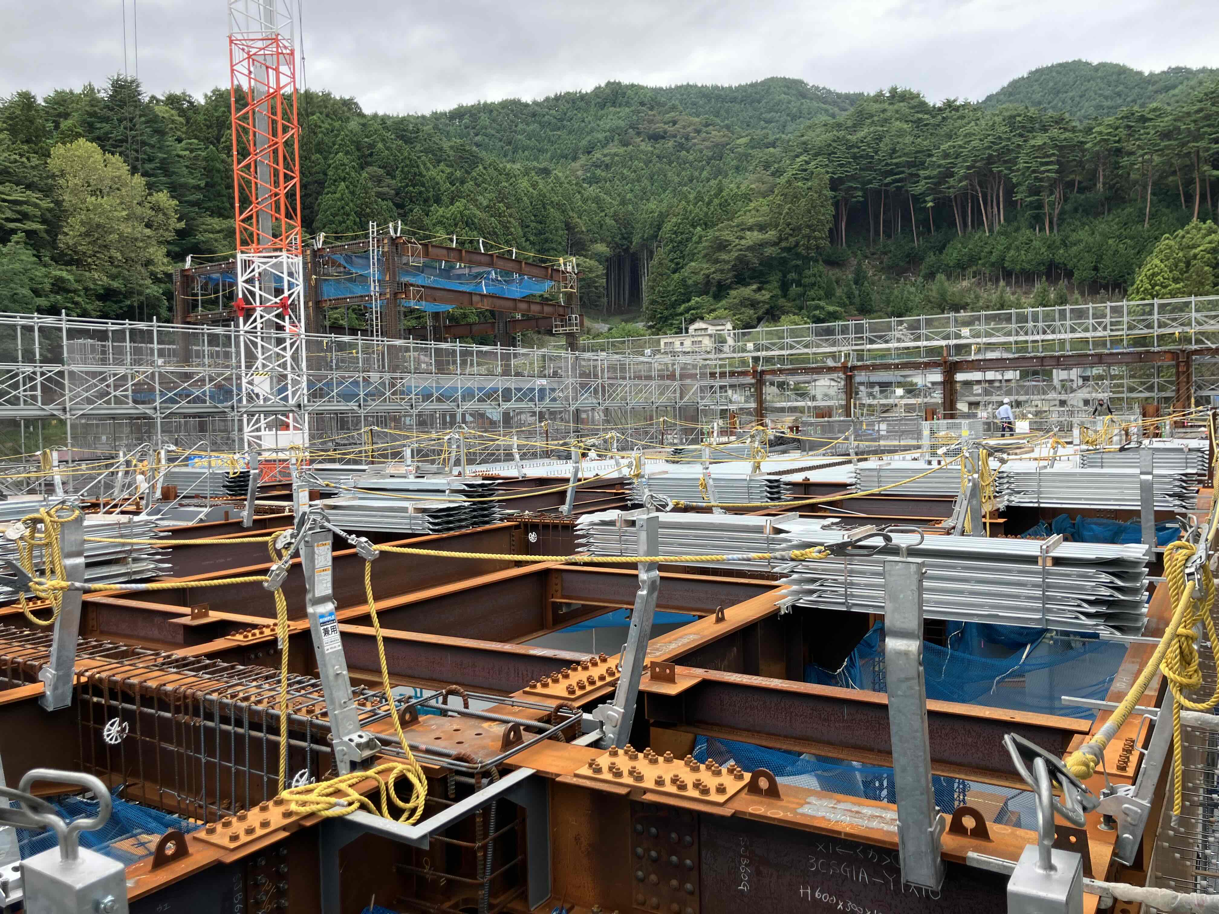 庁舎棟3階の床工事ではデッキプレートの敷き込みが進んでおります。