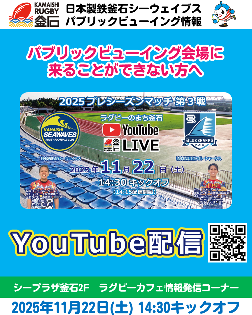 ※最新の情報は「日本製鉄釜石シーウェイブス」公式HPをご覧ください
