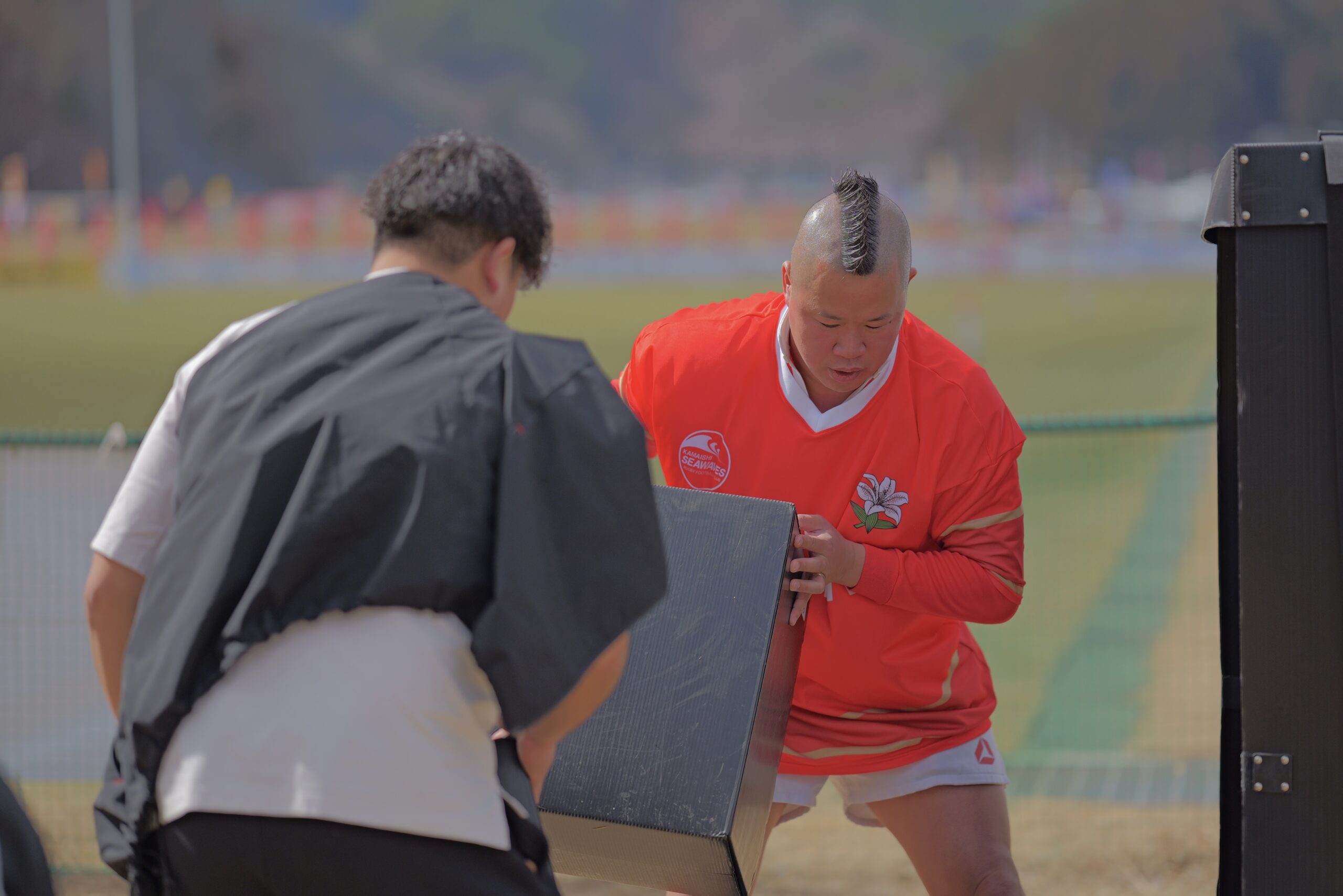 防災スポーツ®の「ゴー!ゴー!キャリー/物資搬送リレー」にラグビー芸人しんやさんが挑戦