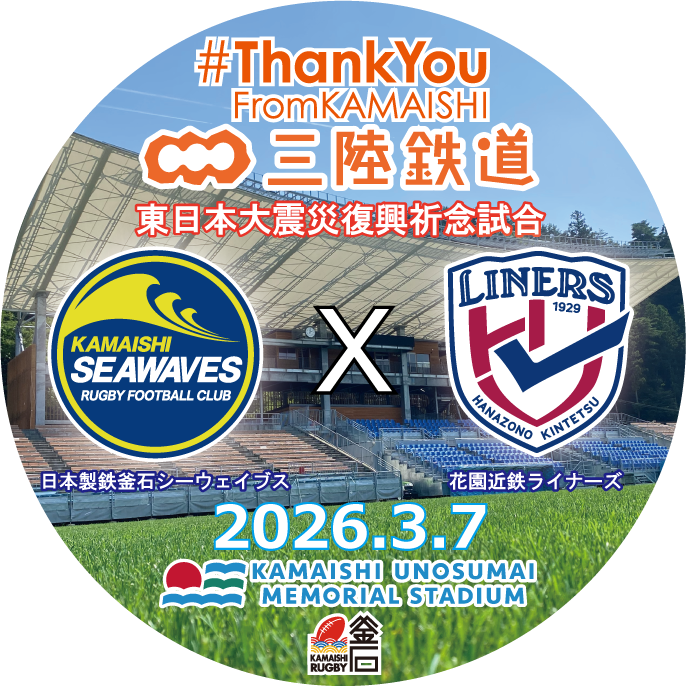 2026年3月7日(土)にジャパンラグビーリーグワン2025-26シーズン、日本製鉄釜石シーウェイブス VS 花園近鉄ライナーズの試合が行われました。