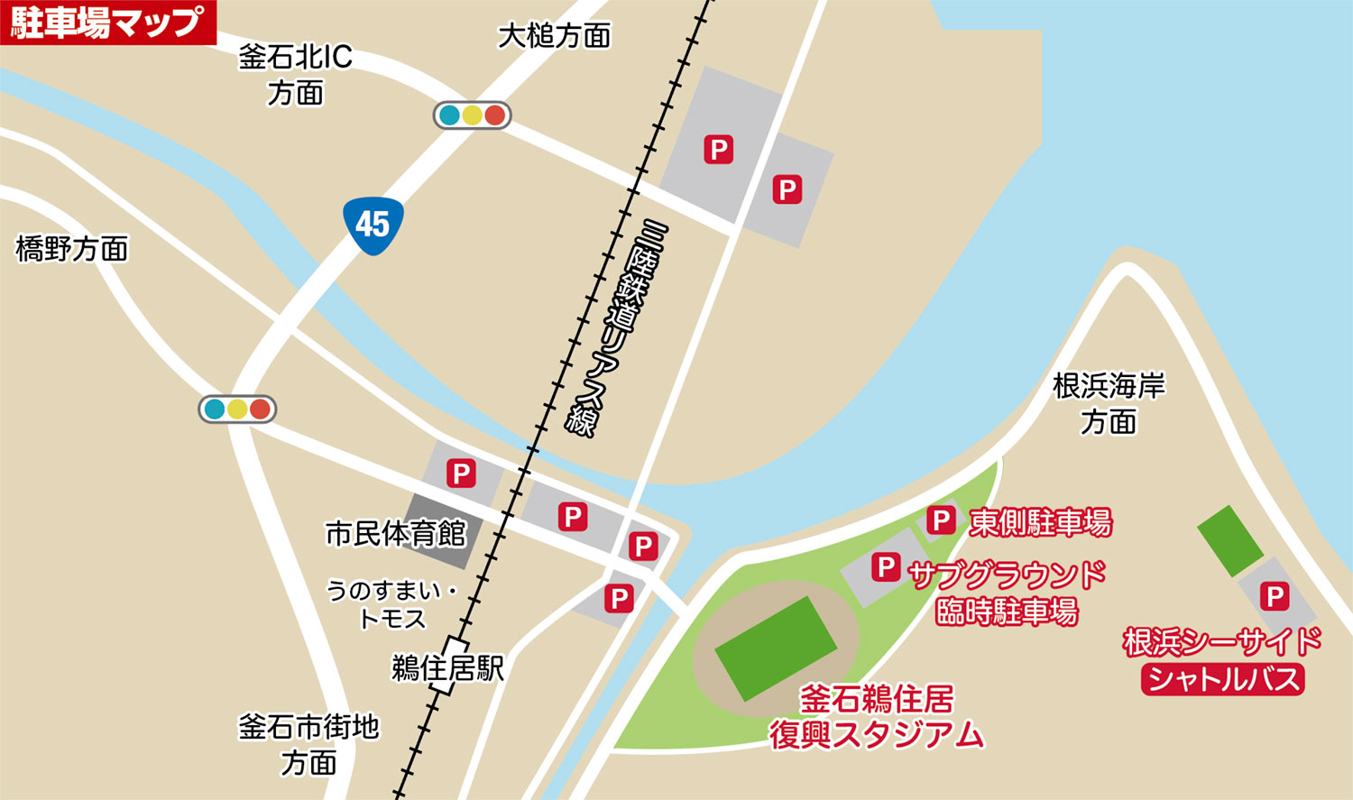- シャトルバス無料送迎駐車場 1箇所(根浜シーサイド)