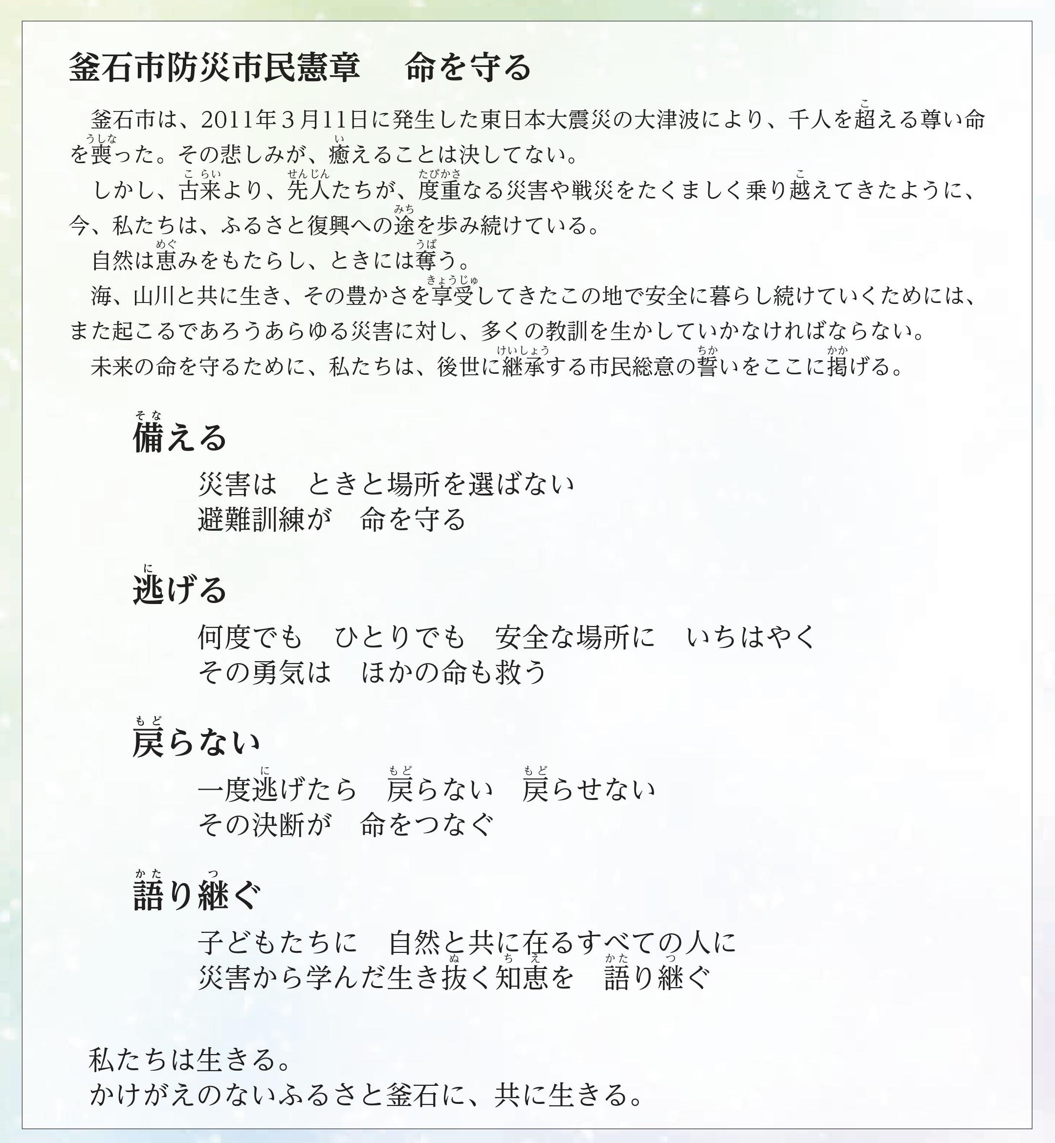 釜石市では、地域の防災力向上を目的として3月1日(日)に地震・津波避難訓練を実施します。 この訓練は、発災時の避難行動や避難経路、避難場所を確認することを通して、正しい防災知識の普及啓発と自助や共助の意識を高めることを目的として開催するものです。災害は、いつ・どこで発生するかわかりません。市民のみなさんの積極的な参加をお願いします。 |