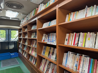 ・移動図書館車「しおかぜ号」では、積載してある本の貸出や返却、予約を行っています。