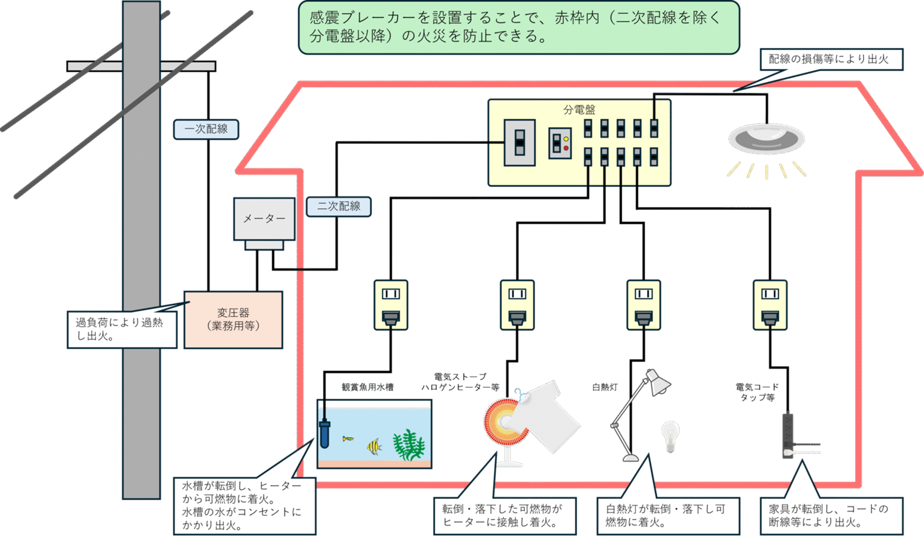 阪神・淡路大震災、東日本大震災や能登半島地震では、地震による火災の半数以上を電気に起因する火災が占めておりました。