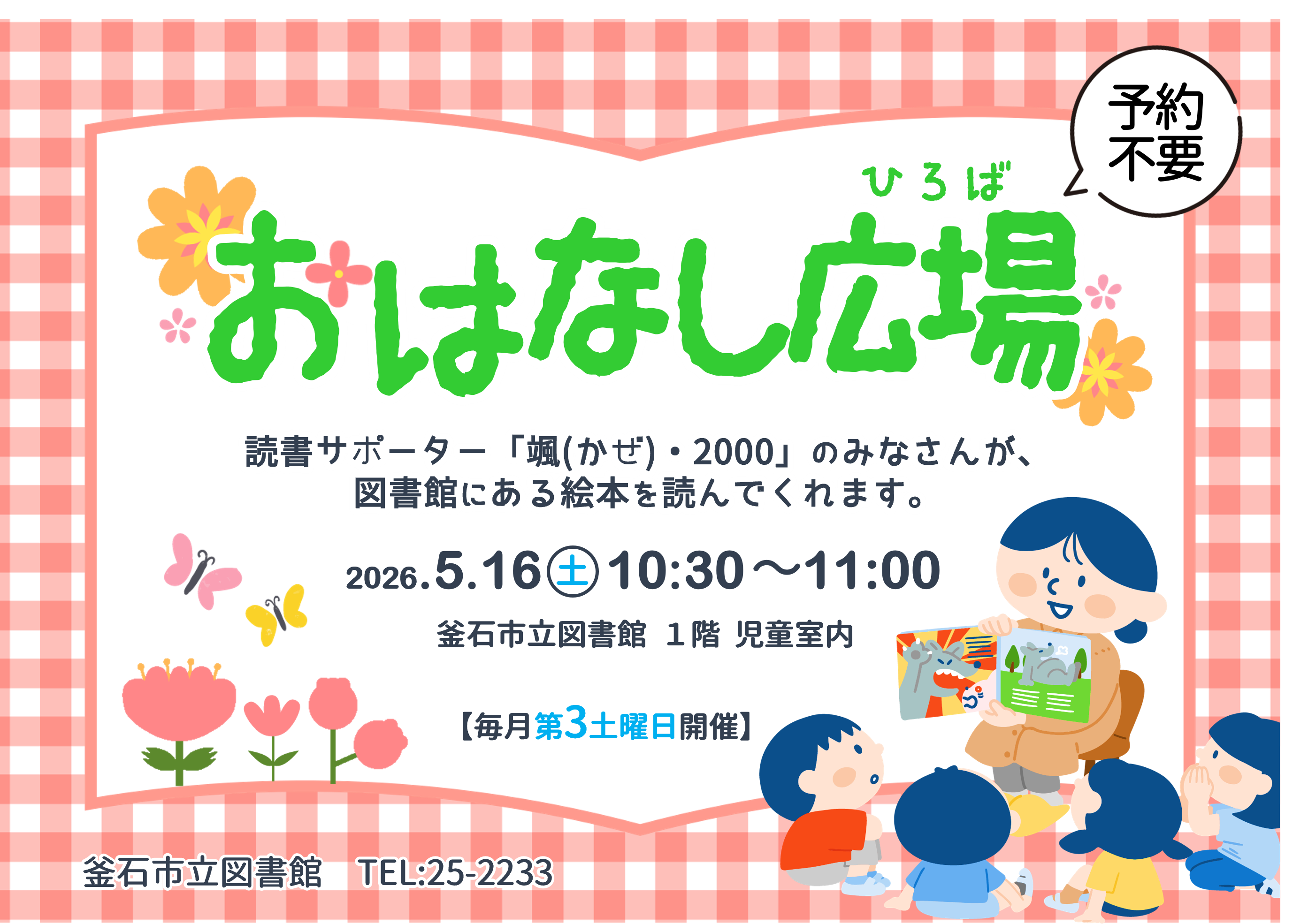 ・毎月第3土曜日は、釜石市立図書館で、よみきかせ会「おはなし広場」を開催しています。