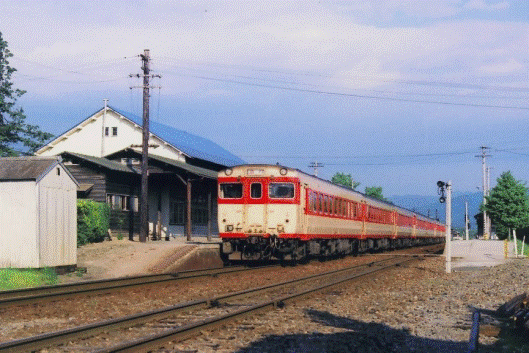 ![]() 土沢駅に停車中の急行「陸中」 |