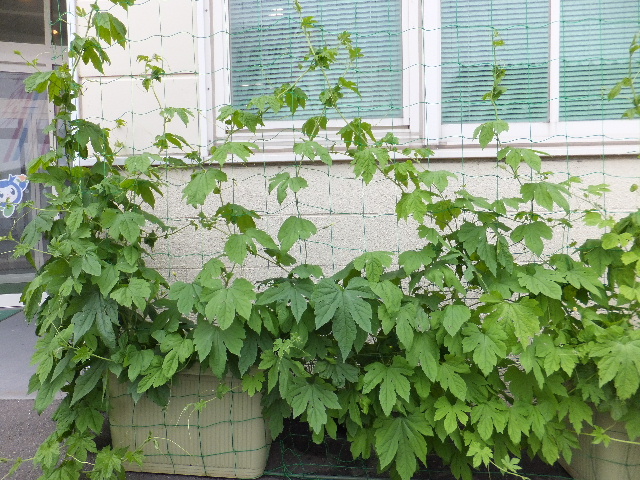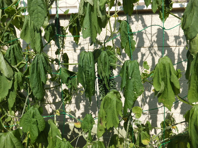 | この日は釜石は猛暑日でした。ゴーヤもこのように元気がありませんでした。 | ||||||||||||||