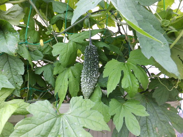 | 収穫前のゴーヤが30個ほど実っています。 | ||||||||||||||