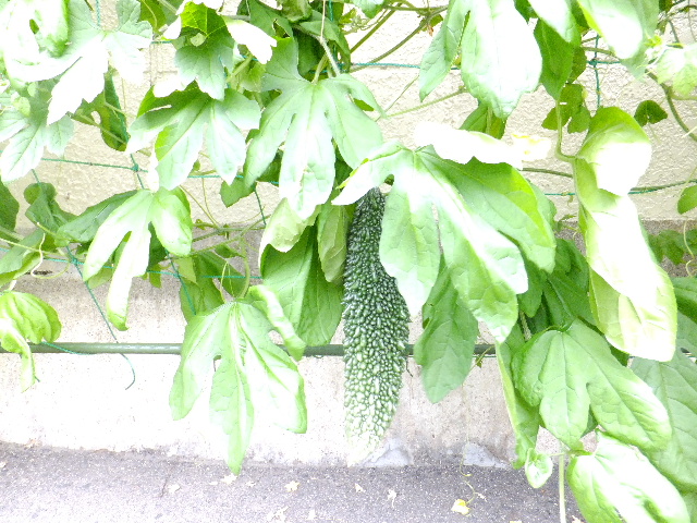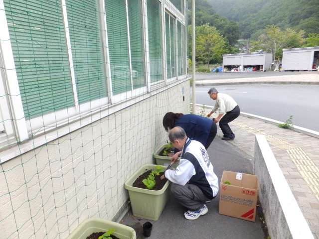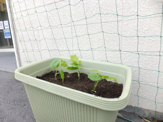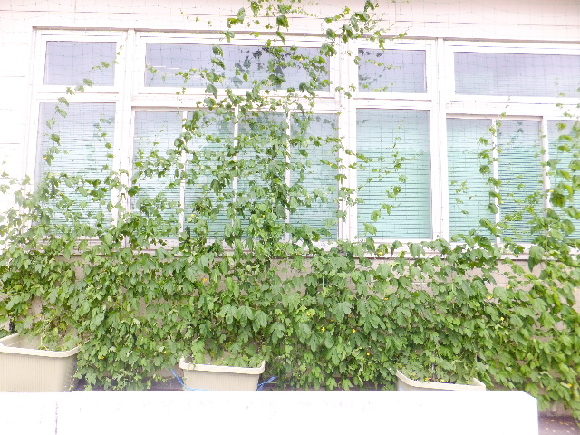 今年も昨年に続いて、郷土資料館前にグリーンカーテンを設置しています。成長の様子を観察しています。