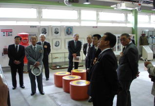 | テープカット後、新しい郷土資料館を来賓の方々にご覧頂きました。 リニューアルオープンした郷土資料館では、約9000点の所蔵資料のうち、約600点の資料を6つのテーマに分けて展示公開しています。移転前の旧資料館では展示できなかった資料も新たに展示公開しています。 |