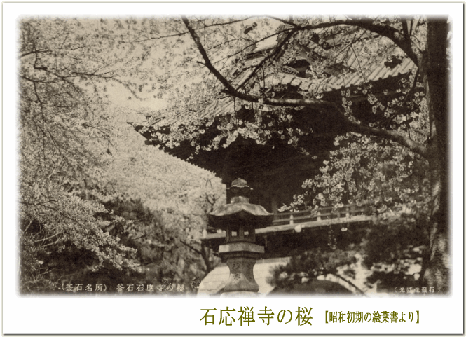 桜の季節に合わせて公開した 絵葉書です。 石応禅寺にはかつて 桜並木があり、 市民に親しまれていたそうです。 |