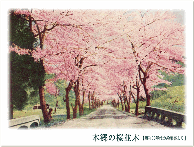 桜の季節に合わせて公開した 絵葉書です。 現在も桜の名所として知られる 本郷の桜並木(唐丹町)は、 昭和8年の三陸大津波により 被害を受けた村の復興を願って 昭和9年に植樹されたもの だということです。 |