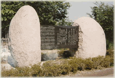 碑文は人形劇『ひょっこりひょうたん島』主題歌の歌詞です。 『ひょっこりひょうたん島』はNHKで昭和39(1964)年から放送され、子供たちの人気を集めました。