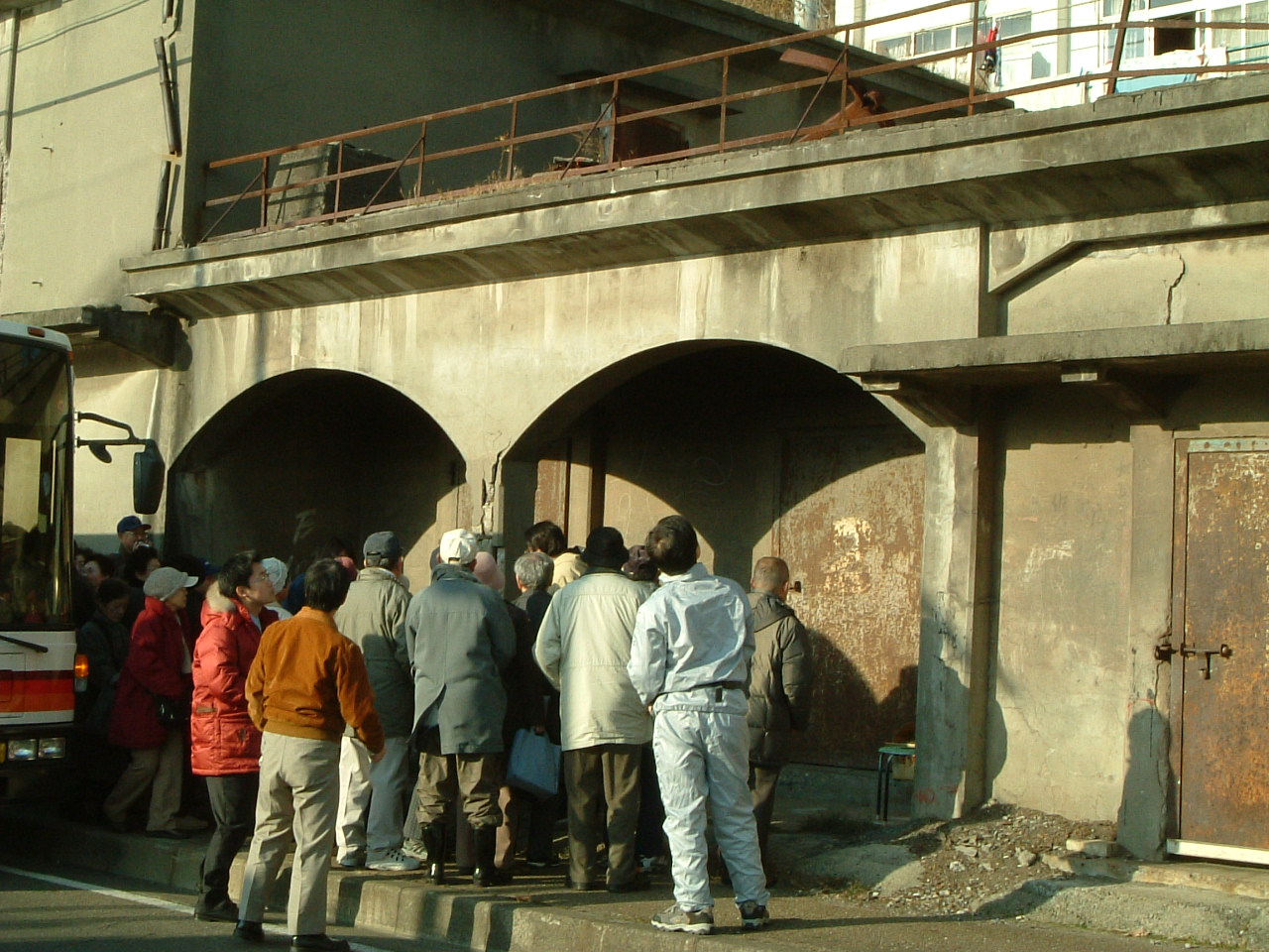 武官府(ぶかんふ)は、東前町と新浜町の境にある旧海軍の弾薬庫跡です。 現在は岸壁が設置され道路もありますが、当時はこれらはなく、駐屯する兵士は船で往来したとみられています。 |
