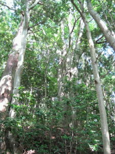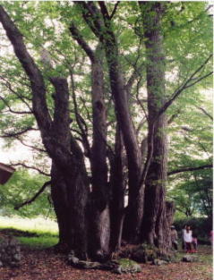 神聖な神社林であるためか、ほぼ手付かずのまま現存しており、いずれも枝張りがよく隆盛である。 |