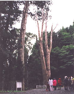 | このスギは、わが国に広く植林される常緑樹で、昔から御神楽スギといわれ、釜石地方の代表的な巨木で、周囲6メートル、樹高約30メートル、樹齢約400年以上と推定される。 | |||||||