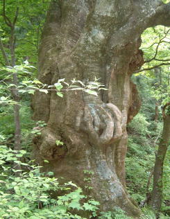 | 和山高原のシナの木(方言でマダノキともいう)は有用落葉樹で、樹勢豪壮にして周囲約5メートル、樹高約10メートル、樹齢約400年以上と推定され、シナの木としては、県内第一の巨木であるといわれる。 | |||||||