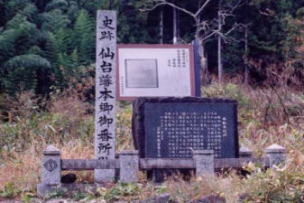 | 番所には「御境番所と、領内要所に置く「物留番所」がある。平田から石塚峠を越えて本郷に通じる旧道は古い時代から浜街道と称して、沿岸を結ぶ重要な交通路であった。 この御境番所跡は、近世幕藩体制が成立する江戸初期、東北地方でしのぎをけずっていた南部、伊達両藩の境界が確定された後、南部藩において伊達領に通じるこの地に番所を設け、兵馬を常置して、通行人の取締りや、藩境の巡視警備にあたった。 |