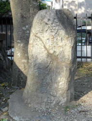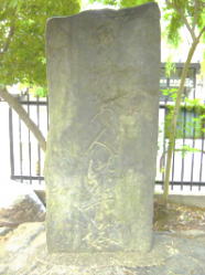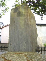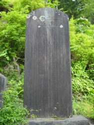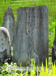 中央の碑銘の左に建立年月日、右側に二名、左側に五名の名が刻んである。 |