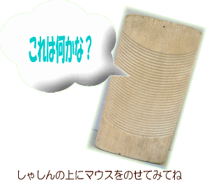 これがなんだかわかるかな? まな板ににているけれど、でこぼこしているね。 これはせんたく板というんだ。むかしの人はこのでこぼこしたところの上でよごれをこすって、せんたくしていたんだよ。 むかしの人は手でせんたくしていたんだね。 あらったせんたくものは手でしぼってからほしていたんだ。今はせんたくきがしぼるところまでやってくれるから、ずいぶん楽になったんだよ。 もどる