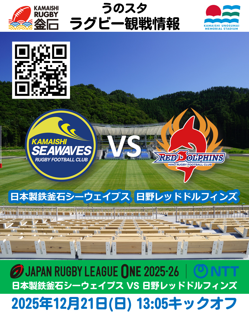 | 文化・スポーツ施設 |  | 【12/21(日)うのスタ】日本製鉄釜石シーウェイブス VS 日野レッドドルフィンズ【チケット販売中】 | 表示 |